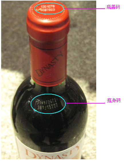 天津“中法合營王朝葡萄釀酒有限公司”利用華美龍公司提供的“LMS信息追溯管理系統”,在每一瓶酒采用“一瓶雙碼”的激光打碼技術,在瓶蓋及瓶身上打印一對關聯的信息追溯碼,通過對生產、倉庫、銷售、市場流通各環節的精確監管,實現產品的精確信息追溯。