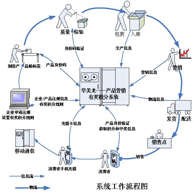 “華美龍產品防偽查詢與積分營銷系統”是在華美龍防偽網絡系統的基礎上,以“產品身份編碼”(通常稱為防偽編碼)為信息源,消費者在購買產品時,通過電 話、手機短信、互聯網絡查詢驗證產品真偽時,系統在驗證回復產品真偽信息的同時,自動按產品銷售企業所設定的積分、獎勵規則給該消費者(積分用戶)進行積 分、兌獎、抽獎。以達到激勵消費者購買產品、提高產品防偽查詢率;遏制假冒產品市場,提高客戶忠誠度、穩定新老客戶;擴大產品宣傳力度,提升企業品牌效應 和市場競爭能力的目的。