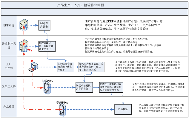 3. 在成品入庫或者出庫時,通過手持數據采集器(PDA)掃描垛中任何一箱或者兩箱就能知道整垛的相關信息。